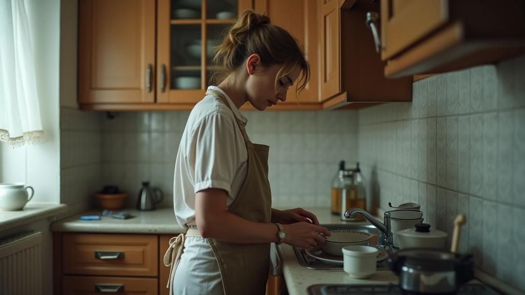 Ольга принесла тряпку, ведро и стала молча собирать то, что осталось от ужина.