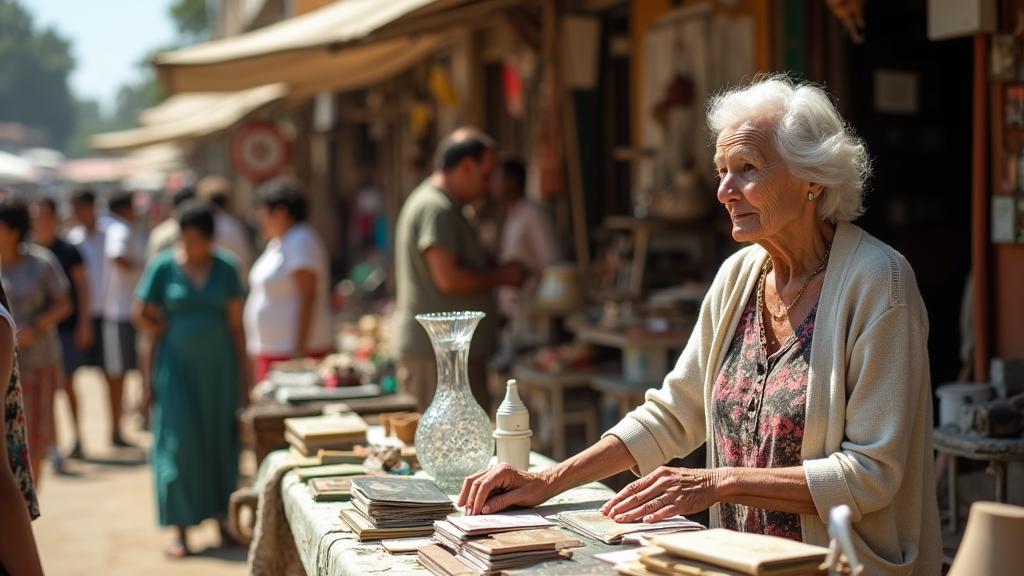 ─ Не могу в грязи работать и не буду. Надо уважать покупателей, ─ спокойно ответила Клавдия Семеновна и начала раскладывать на стареньком, но чистеньком покрывале свой сегодняшний товар. Здесь было несколько изящных статуэток, хрустальная ваза, кованый подсвечник, подписка на Вальтера Скотта и несколько фарфоровых тарелок.