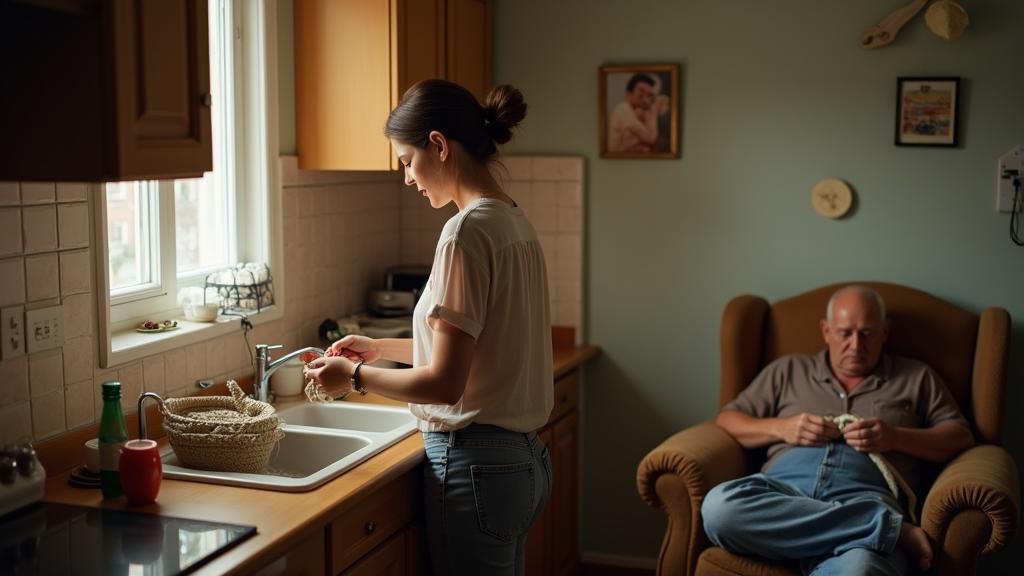Люся встретила Андрея с работы, как всегда, накормила вкусным ужином. Супруг прилег отдохнуть, а она взялась мыть посуду. Старалась не греметь тарелками, чтобы не потревожить сон любимого.