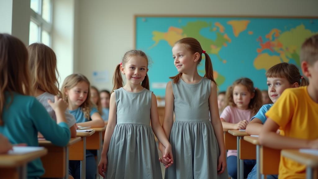 В пятом классе к нам пришли две новенькие – Наташа и Марина Мартыновы, близняшки. Мы, глупые и злые дети, какое-то время называли их «огурцами», от рифмы близнецы-огурцы и, конечно, от их одинаковости. Девчонки на наши шутки не реагировали. Они хорошо учились, были компанейские и стояли друг за друга горой. Помню, завидовала им, хотела иметь сестру или брата, такого же близкого по возрасту: мои были сильно старше.