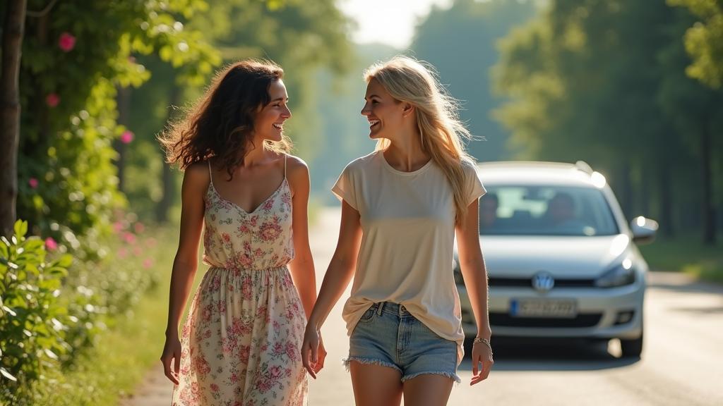 Аня с Ларисой вышли на остановке в пригородном поселке, где размещались дачи горожан. Через несколько минут к ним подъехала машина, а в ней два молодых человека.