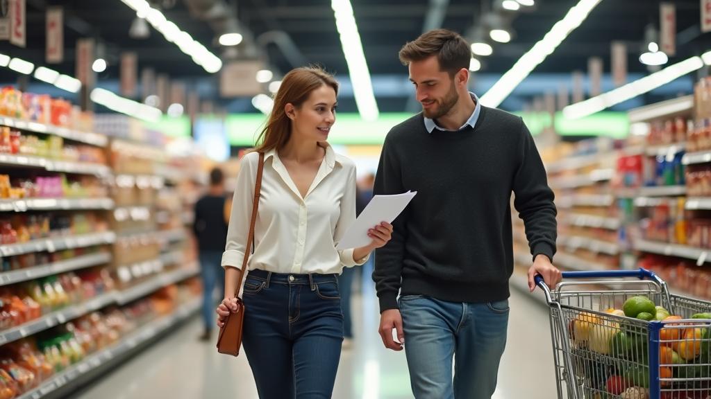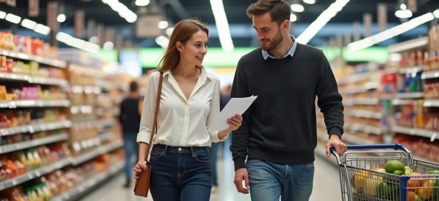 Пришли в супермаркет, взяли тележку и стали затариваться.