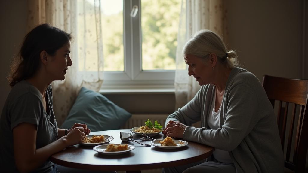 Четвертый день как Маша с сыном в больнице. Обед. Поели. Мама собирает тарелки, несет их к окну выдачи.
