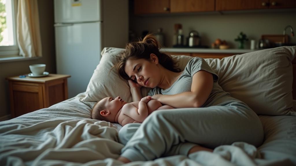Усталая Алла прилегла рядом с шестимесячным сынишкой на супружескую кровать.