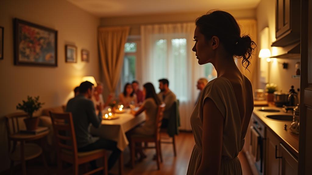 Гости разошлись за полночь. Ольга механически складывала посуду в посудомойку, избегая смотреть на мужа. Виктор молча курил на кухонном балконе — редкая привычка, появлявшаяся у него только в минуты сильного напряжения. Сквозь неплотно прикрытую дверь в кухню проникал сигаретный дым, смешиваясь с запахом недопитого вина и остывающих закусок.