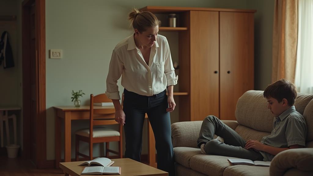 Дома, в попытке немного разгрузить вечер перед выходным, она усадила сына за уроки. Ему это совсем не понравилось, но мама была непреклонна.