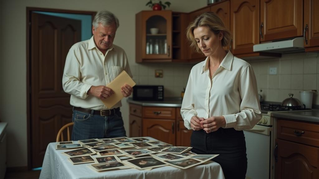 Фотографии рассыпались по кухонному столу, и я замерла, глядя на пожелтевшие снимки. Каждый из них – кусочек прошлого, такого далёкого теперь. Вот мы с Сергеем у фонтана в городском парке – я в белом платье, он в любимой рубашке в полоску. А здесь – наш первый Новый год вместе, я развешиваю гирлянды, а он пытается поймать меня в объектив. Господи, какими же молодыми мы были, какими счастливыми…