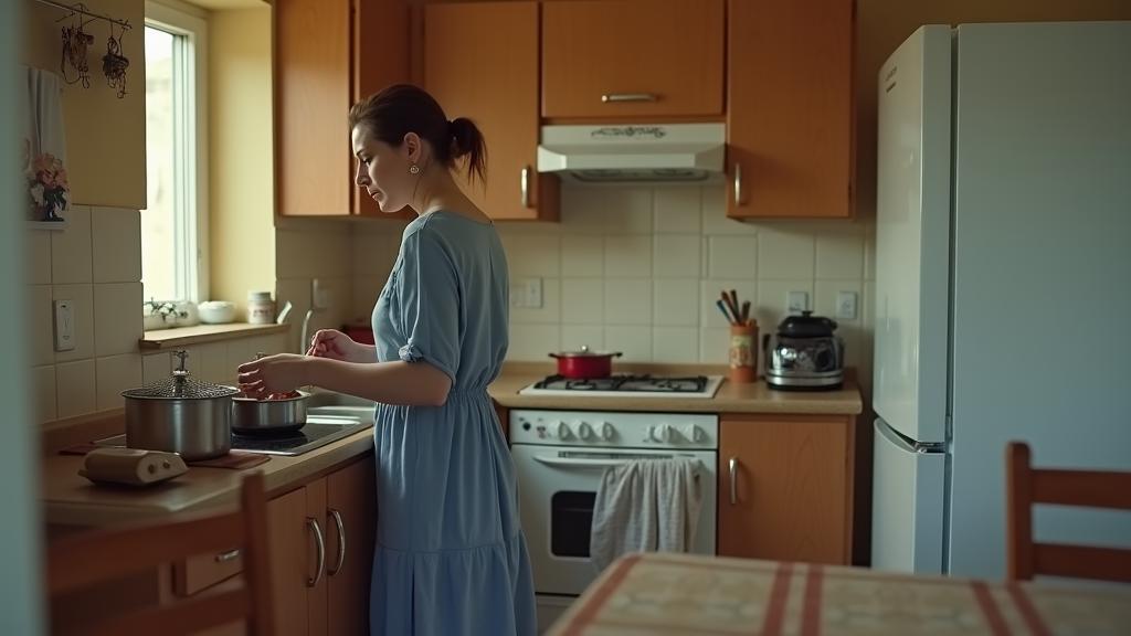 Я стояла у плиты, машинально помешивая соус, когда в прихожей наконец хлопнула дверь. Сергей. Опять задержался. В горле предательски запершило, но я сдержалась. Может, правда что-то важное на работе? Одёрнула своё любимое домашнее платье – то самое, синее, в котором, по его словам, я особенно красива – и постаралась улыбнуться.