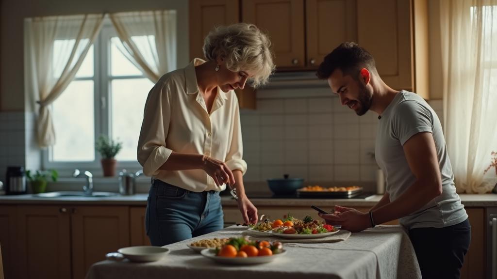 Ольга почувствовала, как к горлу подступает комок. Двадцать лет вместе – и она впервые видела, как он лжёт. Неумело, почти по-детски. Руки задрожали, тарелка накренилась, и горячий суп пролился на скатерть.