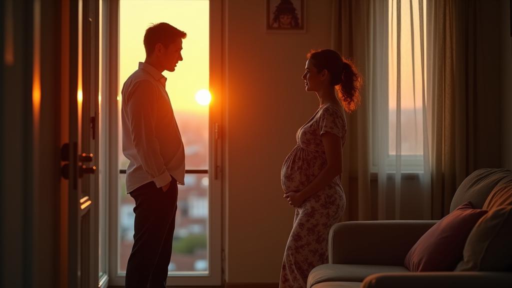 Светлана молча наблюдала за мужем, машинально поглаживая живот. В тишине было слышно только тиканье часов и отдалённый шум вечернего города за окном.